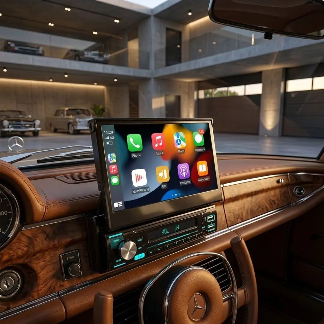 📺 Pantalla Táctil 7” HD Retráctil Diseño moderno que se despliega suavemente y optimiza el espacio del tablero.